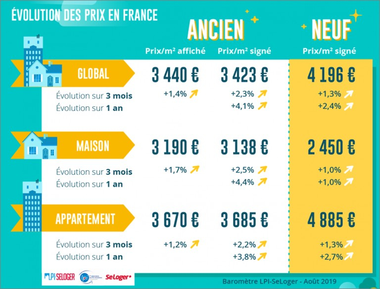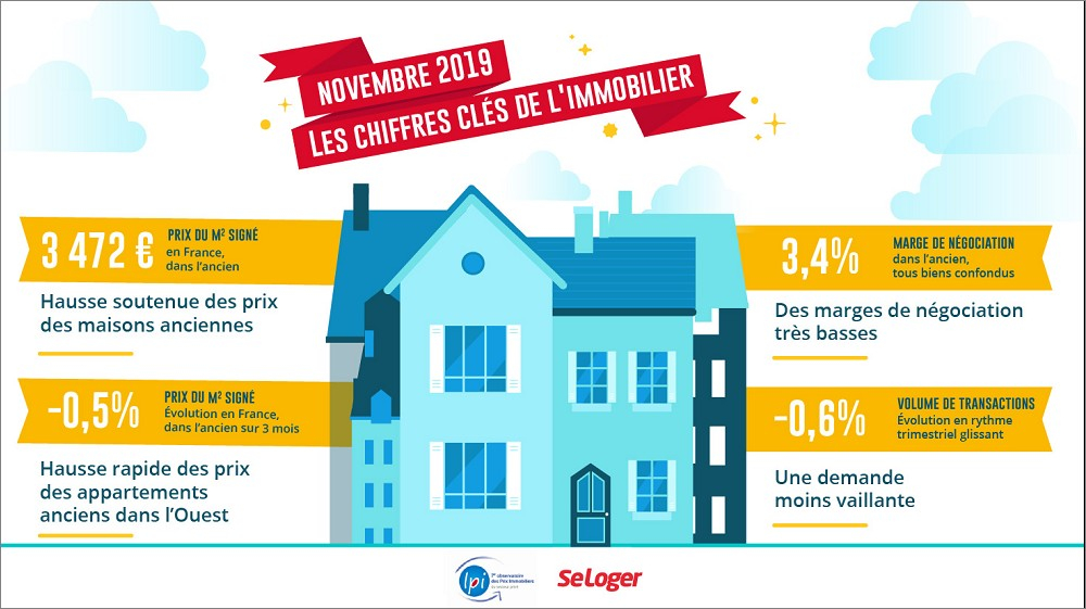 Les prix de l'immobilier ancien ont gagné en moyenne 1, 8 % en France sur les onze premiers mois de 2019, selon l'indice des prix de l'immobilier Meilleurs Agents.