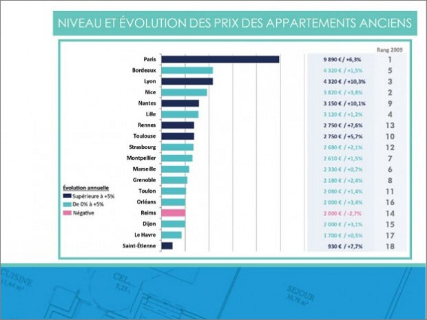 Ailleurs, les tensions sur les prix s’allègent encore comme à Bordeaux où la hausse, qui durant plus de deux années a largement déstabilisé le marché, est maintenant de 8.5 %, contre plus de 12 % durant l’été dernier. Mais aussi à Lyon et à Paris, avec des augmentations un peu supérieures à 6 %. Et dans la plupart des plus grandes villes (Lille, Marseille, Nice, Strasbourg ou Toulouse), la hausse n’est plus que de 2 % sur un an.